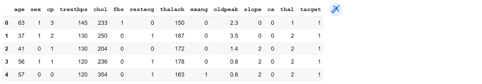 我们将使用 UCI 存储库中提供的心脏病预测数据集。为方便起见,让我们使用来自 Kaggle 的数据的.csv 版本。你还可以使用其他分类数据集。