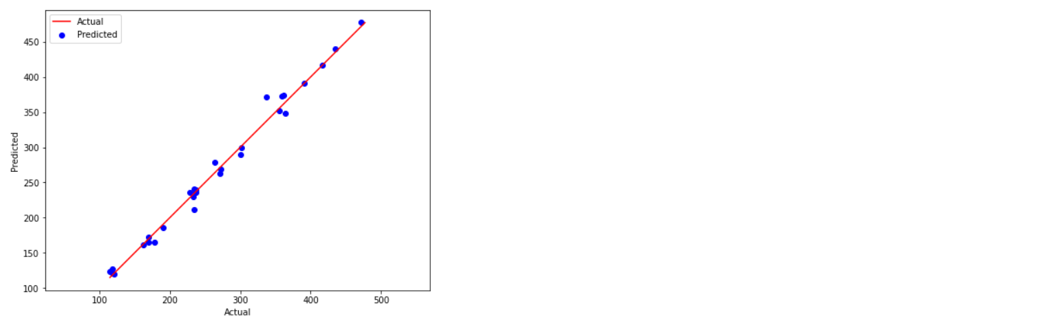 我们还可以使用 matplotlib 绘制预测值与实际值,如下所示