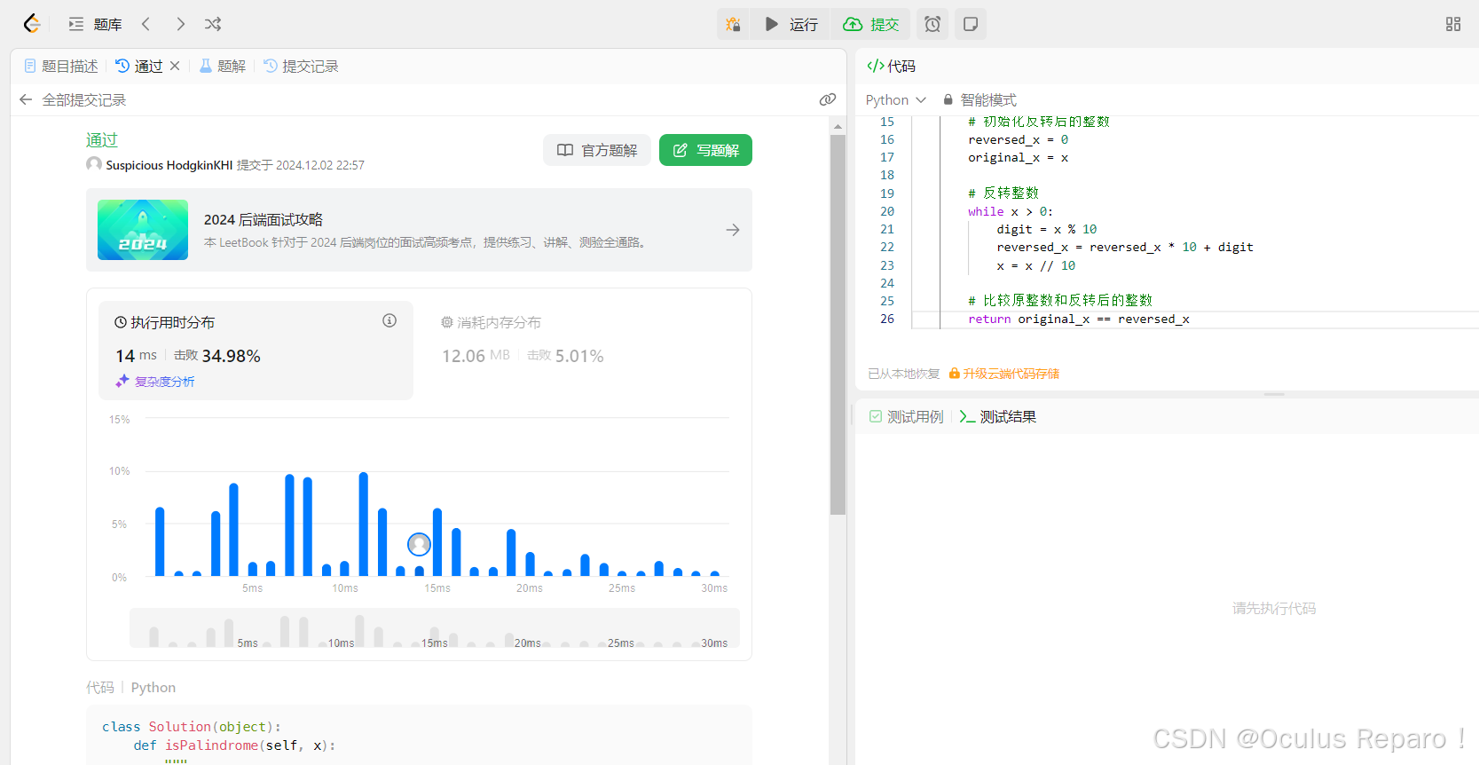 回文数 示例 1: 提示: 进阶:你能不将整数转为字符串来解决这个问题吗? 以上是一道在线代码测试题,请按照以下格式输出答案: |