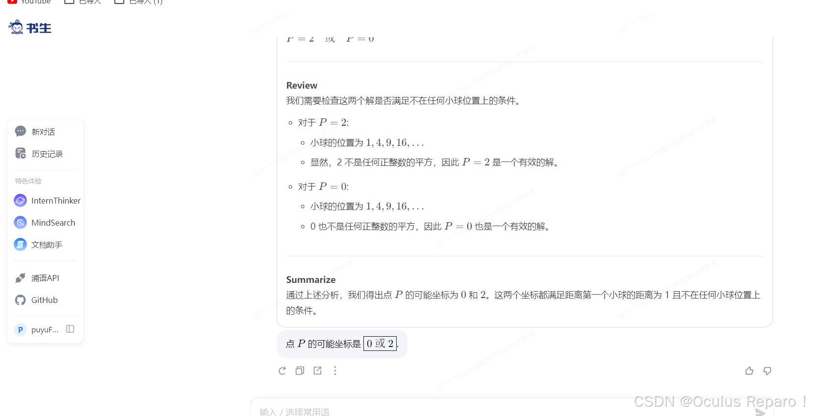 任务二,考倒 InternThinker:选择到 5 道您对题目答案有把握的且在互联网社交媒体上尽可能没出现过的 puzzle 推理题(您所在专业题目、面试代码题、逻辑思维题、行测找规律问题、高等数学题、奥赛题等等) 考倒 InternThinker:让 InternThinker 生成错误的回复。