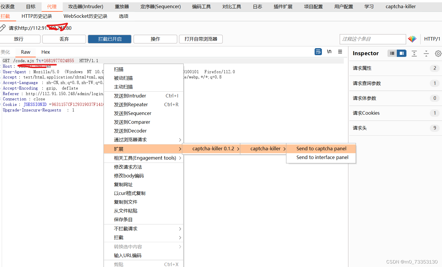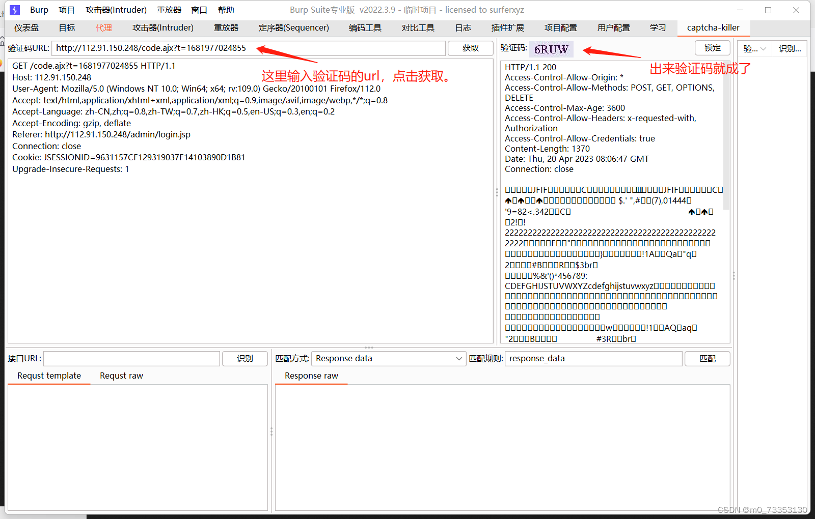 访问验证码的链接地址,抓验证码的请求包,并发送到插件