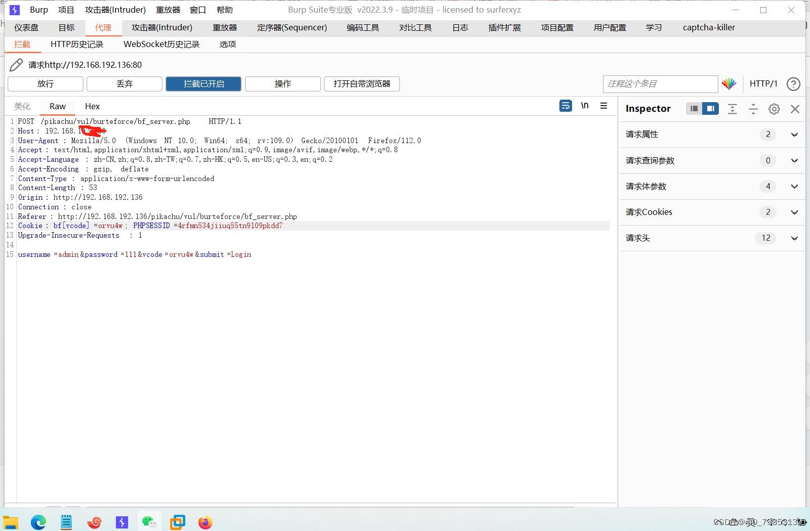 注意:获取验证码的cookie一定要和intruder发送的cookie相同!