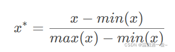 数据归一化(Normalization,又称Min-Max Scaling):当数据(x)按照最小值中心化后,再按极差(最大值 - 最小值)缩放,数据移动了最小值个单位,并且会被收敛到 [0,1] 之间。