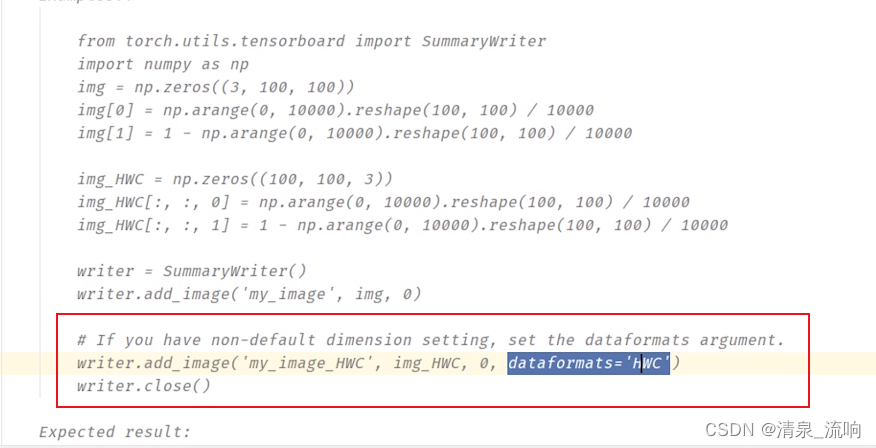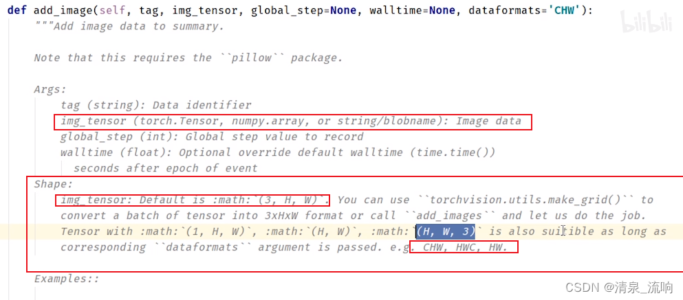 add_image的用法:参数1、tag是图表的标题,参数2、img_tensor是图像的数据,对应于坐标轴的纵轴,参数3、global_step对应于坐标轴的横轴
