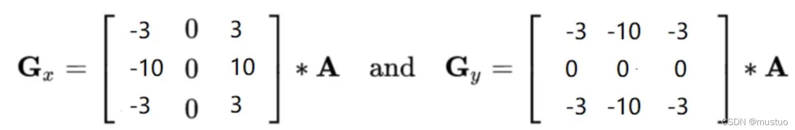 本文为课程《OpenCV计算机视觉实战》的课程笔记。本章节讲述了图像梯度的计算方法。图像的梯度表征每个像素点和周围像素点差异程度。上:梯度值公式;下:梯度方向公式1 Sobel算子Sobel算子关注像素点和上下左右四个像素点的差异程度,即分别从x方向和y方向计算锚点梯度。首先用Gx×AG_x×AGx×A得到锚点xxx方向的梯度,再用Gy×AG_y×AGy×A得到yyy方向的梯度。最后将两个方向