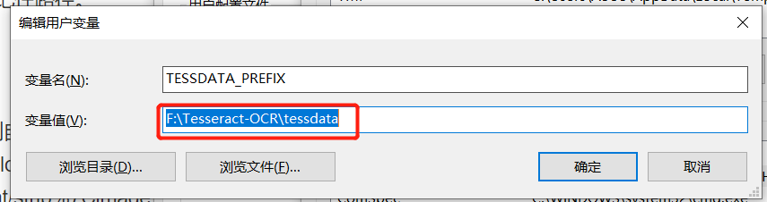 路径还是你刚刚安装的Tesseract-OCR路径,但是要将它定位到其中的tessdata,变量名也一定不能改。
