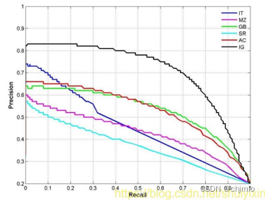 P-R的关系曲线图,表示了召回率和准确率之间的关系,精度(准确率)越高,召回率越低。