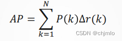 其中𝑁代表测试集中所有图片的个数,𝑃(𝑘)表示在能识别出𝑘个图片的时候 Precision的值,而 Δ𝑟(𝑘)则表示识别图片个数从𝑘 − 1变化到𝑘时(通过调整阈 值)Recall值的变化情况。