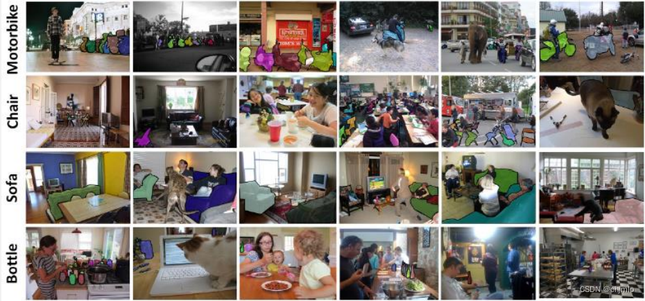 PASCAL的全称是Microsoft Common Objects in Context,起源于微软于2014年出资标注的Microsoft COCO数据集;数据集以scene understanding为目标,主要从复杂的日常场景中截取; 包含目标分类(识别)、检测、分割、语义标注等数据集;ImageNet竞赛停办后,COCO竞赛就成为是当前目标识别、检测等领域的一个最权威、最重要的标杆;官网:http://cocodataset.org