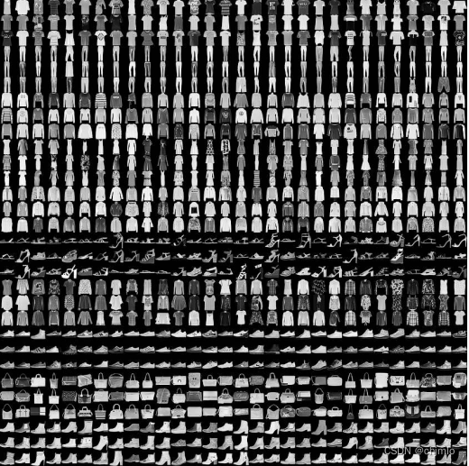 Fashion-MNIST数据集是一个替代 MNIST 手写数字集的图像数据集。 它是由 Zalando旗下的研究部门提供,涵盖了来自 10 种类别的共7万个不同商品的正面图片;FashionMNIST 的大小、格式和训练集/测试集划分与原始的 MNIST 完全一致,仍为60000/10000 的训练测试数据划分,28x28 的灰度图片。下图是数据集中的类,以及每个类的十个随机图像: