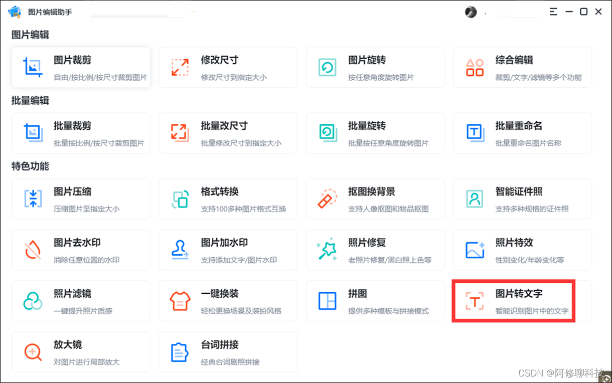 第一步 打开电脑上的软,在软件的首页找到“特色功能”里面的“图片转文字”,并且上传拍摄好的图片表格文件。