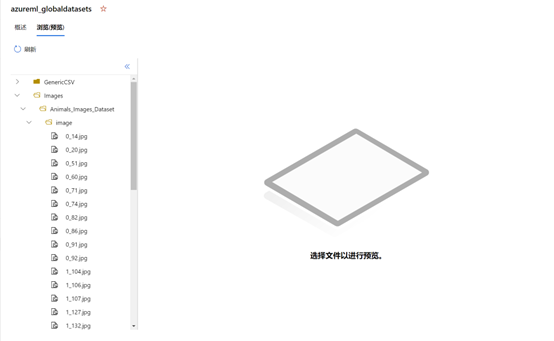 点击azureml_globaldatasets将跳转到Datastore浏览器,您可以在这个浏览器下观察到您存储的数据。大致的界面如下