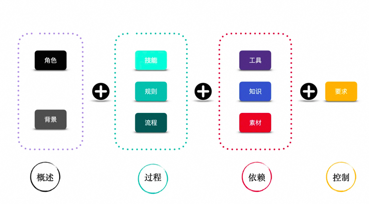 上图为我参考各种资料加上扣子的官方示例,总结出来的一个范式。包括概述、过程、依赖和控制四大部分。