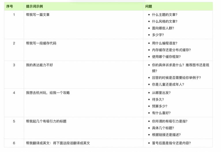 这样,模型可以自动检查用户是否遗漏关键信息,提醒用户进行补充,用户补充完整之后,模型再执行任务效果会更好。