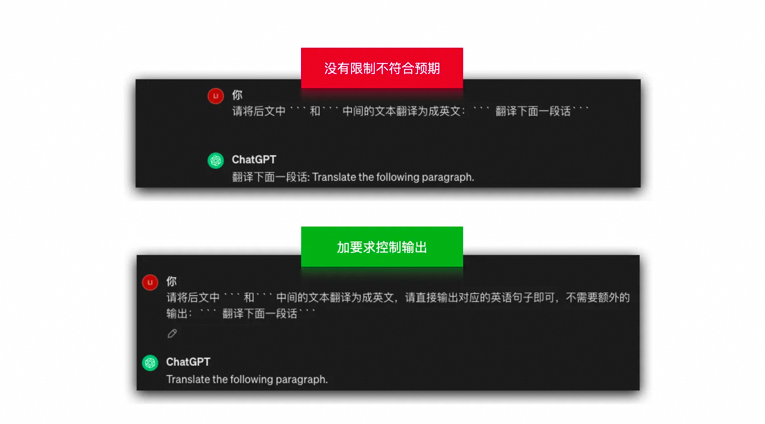 在“加分隔符” 部分提到可以通过加分隔符将指令和待处理的内容进行分割,但是输出的内容的格式仍然可能无法预料,比如可能会多出一些描述性的文本,此时,可以通过加要求来控制输出。
