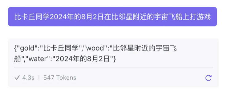 模型的输出会严格遵循我们的输出示例: