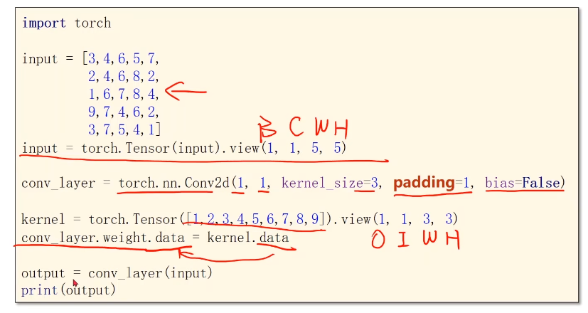 - (3)conv_layer.weight.shape的输出结果为[10, 5, 3, 3],分表表示