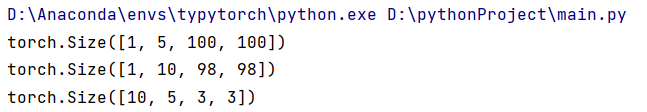 - (2)输出的张量信息为[1,10,100,100]分别表示batch_size,out_channels,width',height',其中width',height'表示卷积后的每个通道的新尺寸大小