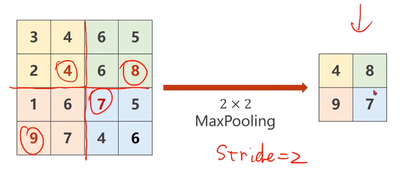 - 若使用2x2的Maxpooling 默认stride = 2
