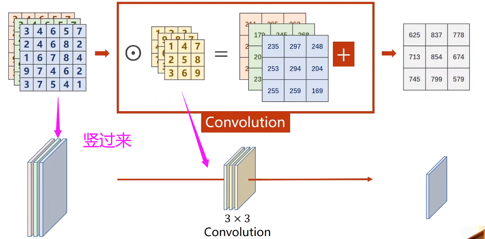 我们把上述图像通道如果放在一块,计算原理过程还是与上面一样,堆叠后的表示如下: