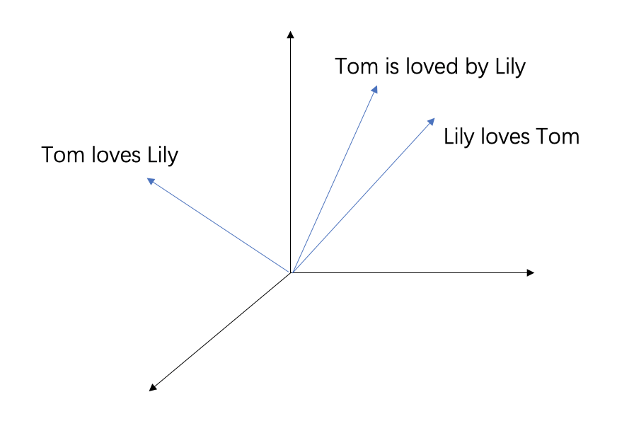 而 Lily loves Tom 和 Tom loves Lily 的单词组成是一样的,但是它们的语序差异带来了较大的语义差别,因此它们被投射到不同的空间。