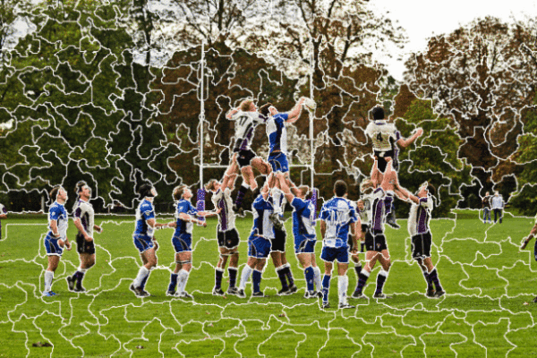 superpixels(超像素):最早在被Xiaofeng Ren等人(2003)在论文《Learning a Classification Model for Segmentation》提出。其是一系列像素的集合,这些像素具有类似的颜色、纹理等特征,距离也比较近。如下图,其中每个白色线条区域内的像素集合就是一个超像素,超像素很可能把同一个物体的不同部分分成多个超像素。