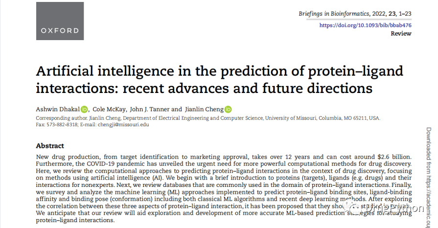学术速运|预测蛋白质-配体相互作用的人工智能:最近的进展和未来方向