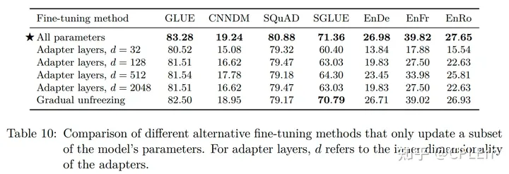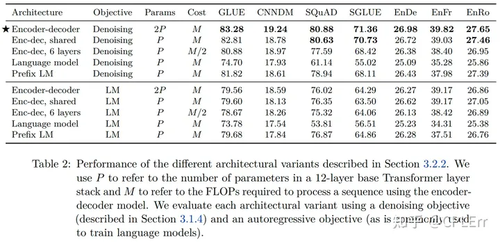 - 采用Denosing 目标函数的 Encoder-Decoder 性能最好,Encoder与Decoder共享权重的模型也能取得很好的性能,因此可以考虑通过共享权重的方式减少模型参数量,但是仍然不降低模型精度;但是将模型层数减少一半会极大地损害模型性能。