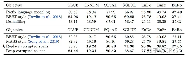 - BERT式的MLM目标函数比Prefix LM的目标函数效果更好