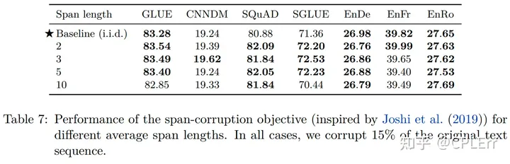 - mask文本片段时,采用平均长度为3的片段时,相对性能最好