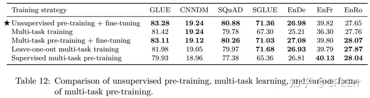 - 多任务预训练:在非监督预训练时,混合有监督任务可以涨点。