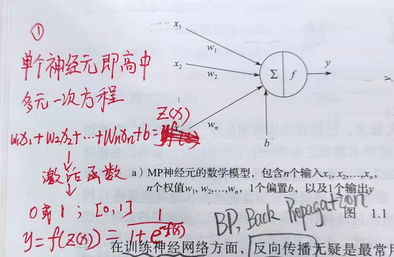 ,一个偏置b,以及一个输出y。 ==>即我们高中学到的多元一次方程: