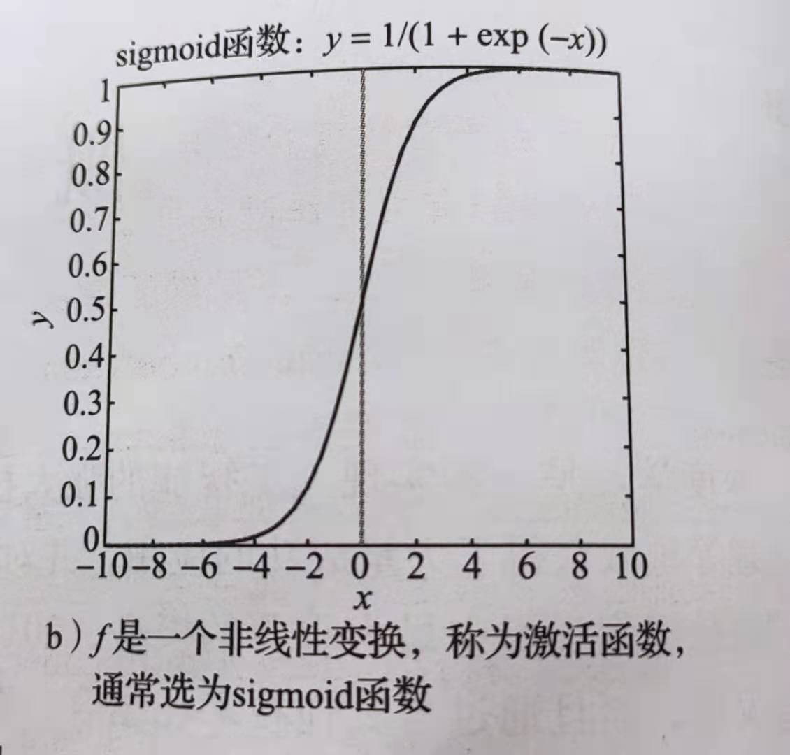 f是一个非线性变换,称为激活函数,通常选为sigmoid函数,公式为: