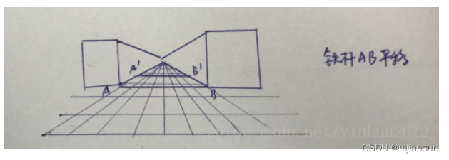 在笛卡尔空间中,两条平行线是永远不会相交的,但是在透视空间中,两条平行线会相交于一点,这是两种空间最大的区别。