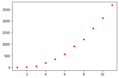 plt.scatter(years,sales,c = "red",marker = "*")