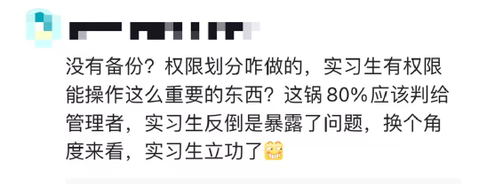 总之大部分网友认为,一个实习生不应该承担太多的责任!