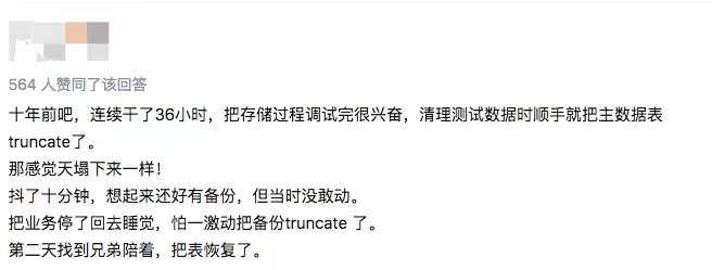 在话题「不小心删库是一种怎样的体验?」下,很多人都发表了当年的经历。