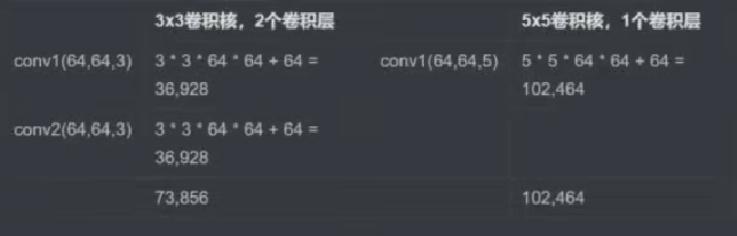 这是参数量的原因,两层3×3的卷积核,卷积核s上的为为s上的为为上的参数量