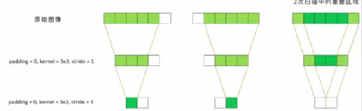 2次扫描中的区域,padding = 0, kernel = 3x3, stride = 1。
