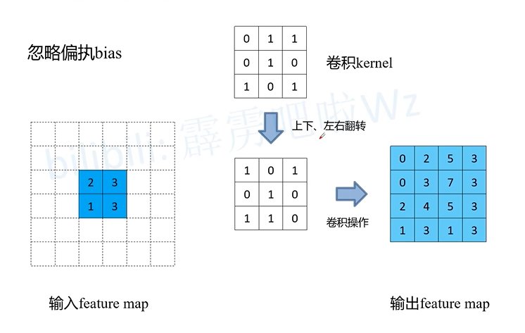 在神经网络中,卷积与信号工程学数学表达式类似但并不相同,神经网络中卷积操作是做点积运算。