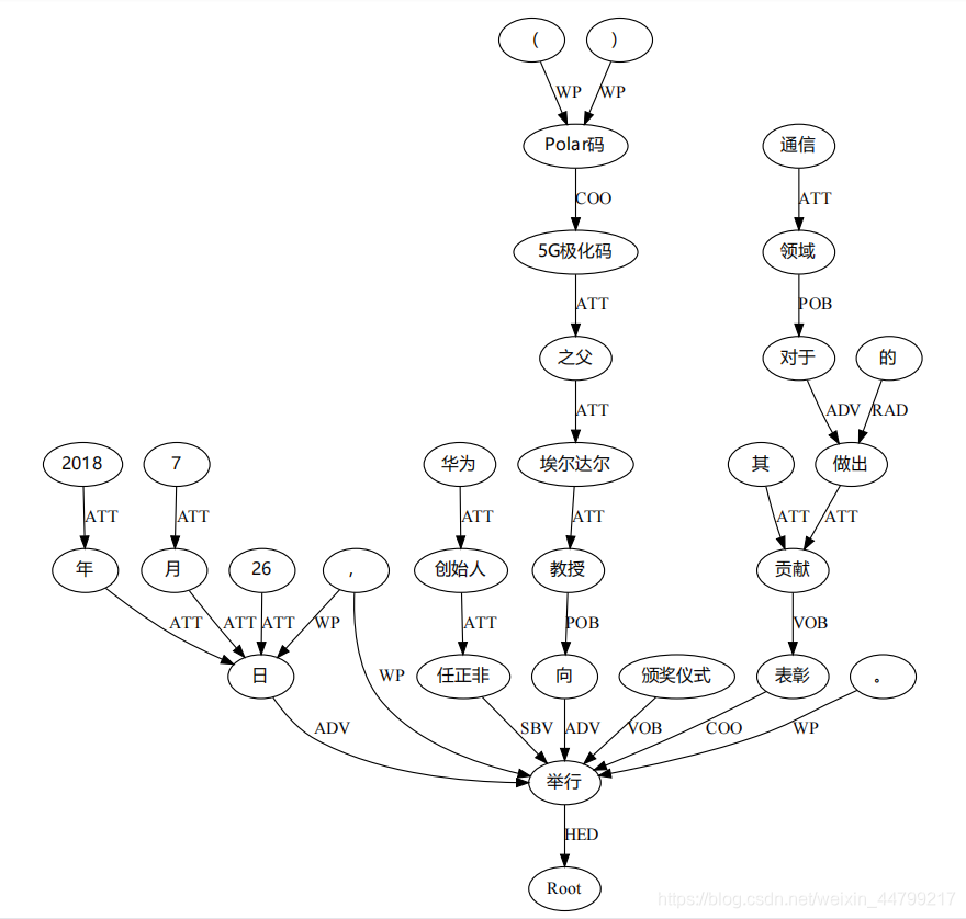 sent = '2018年7月26日,华为创始人任正非向5G极化码(Polar码)之父埃尔达尔教授举行颁奖仪式,表彰其对于通信领域做出的贡献。'