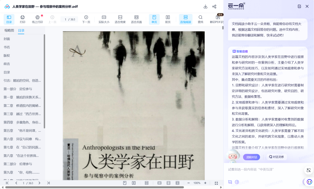 在阅读万字长文时,通过AI阅读助手,能够快速生成结构化的内容摘要及可视化的思维导图,帮助用户清晰地获取网页关键信息,还可以与“AI助手”进行对话,就文章内容或相关内容进行深入追问和扩展。如果遇到英文文档,AI阅读助手可以实时翻译,如遇到看不懂的英文,选中即可进行中英对照。