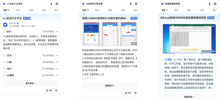 夸克依托自研大模型能力,其搜索问答产品“元知”,综合全网优质内容,用户可以在搜索结果中,查看到AIGC总结提炼出的回答内容,其中包含图文、视频等多种形式,辅助用户更便捷、高效地获取信息。夸克围绕智能助手的定位,为用户提供“内容产品+智能工具”的服务矩阵。