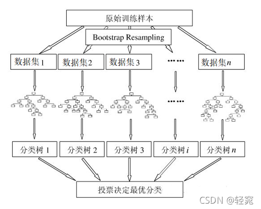 bootstrap:随机有放回抽样,如果不进行随机抽样,每棵树的训练集都是一样的,最终训练出来的树分类结果将是完全一样的