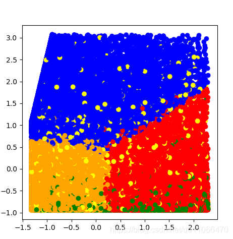2、计算蓝1分别到红色类别,绿色类别所有的点的距离,求出平均值