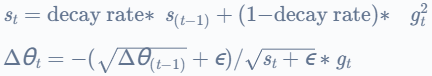 Adadelta 是 Adagrad 的扩展,它通过基于梯度的移动平均线和平方梯度的移动平均线缩放学习率来降低 Adagrad 的积极、单调递减的学习率。Adadelta 不需要手动学习率,也可以处理可变长度序列。