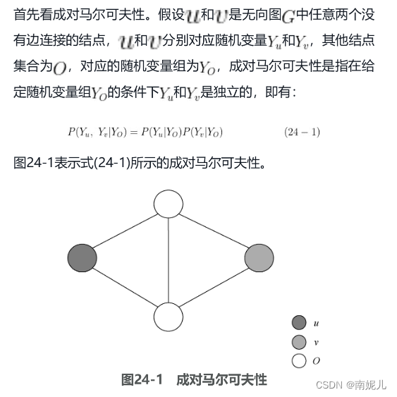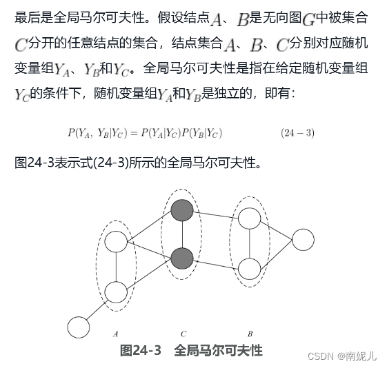 如果联合概率分布[插图]能够满足成对马尔可夫性、局部马尔可夫性和全局马尔可夫性,那么它就可以称为概率无向图模型,也称马尔可夫随机场