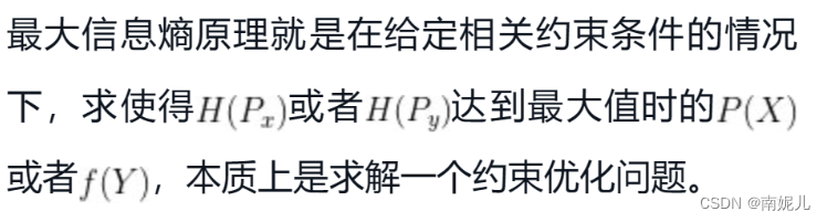 最大信息熵原理认为在所有可能的概率模型中,熵最大的那个模型为最优模型。