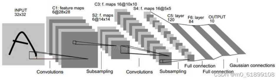 LeNet-5 60k参数。网络基本架构为:conv1 (6) -> pool1 -> conv2 (16) -> pool2 -> fc3 (120) -> fc4 (84) -> fc5 (10) -> softmax。括号中的数字代表通道数,网络名称中有5表示它有5层conv/fc层。当时,LeNet-5被成功用于ATM以对支票中的手写数字进行识别。LeNet取名源自其作者姓LeCun。