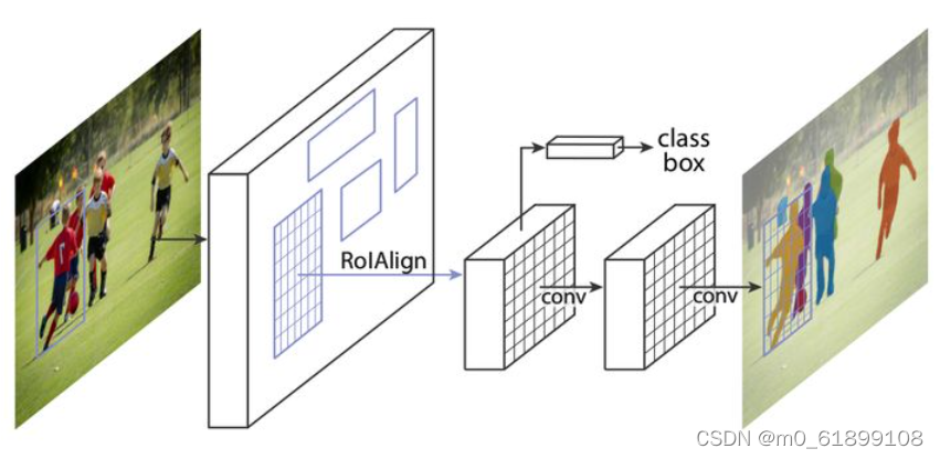 基本思路 目标检测+语义分割。先用目标检测方法将图像中的不同实例框出,再用语义分割方法在不同包围盒内进行逐像素标记。